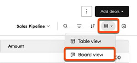 - If it doesn’t open in board view automatically, use the view type dropdown and switch to Board view.